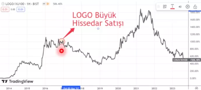 Örnek olarak Logo firmasında 2016 yılında yaşanan hakim hissedar satışını ele alalım. Bu satıştan önce yaklaşık %74 olan hakim hissedar sahiplik oranı %38'e kadar düşmüştü. Bu ciddi bir değişim ve bu değişim olmadan önce 2014'ten 2016'ya kadar Logo firması BIST 100 endeksinden ciddi anlamda pozitif ayrışırken, bu satıştan sonra negatif bir performans başlamış ve yaklaşık 3 yıl boyunca Logo, BIST 100 endeksine kıyasla kötü bir performans sergilemişti.