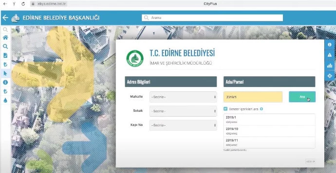 Buradan sonrasında bu gayrimenkul bir arsaysa, bu örneğimiz bir arsa üzerinden gidiyor. Daire ise de bunları yine yapabilirsiniz. Bu parselin imarını öğrenmemiz gerekiyor. Her belediyenin e-imar uygulaması var. E-imar ile internetten bir parselin imar durumunu, o gayrimenkule hiç gitmeden, belediyeye gitmeden öğrenebilirsiniz.